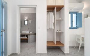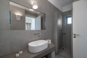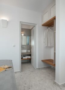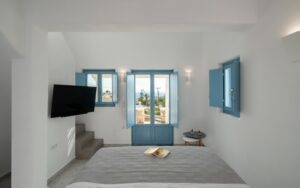It is a maisonette with a staircase and two shower bathrooms. Spacious with modern furniture and a fully equipped kitchenette. Two double built - in beds 2,00x1,60m. Panoramic view of the sea and village. Accommodates up to 4 guests. Size appr. 57 sq. meters